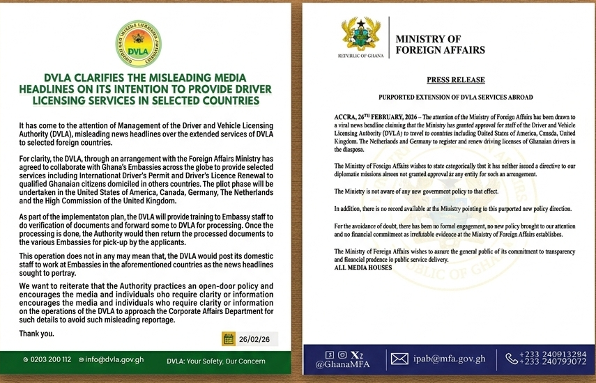 While the DVLA announced plans to collaborate with Ghana’s diplomatic missions to provide selected licensing services in some foreign countries, the Ministry of Foreign Affairs has publicly distanced itself from the initiative, stating it has neither approved nor been formally engaged on such an arrangement.
