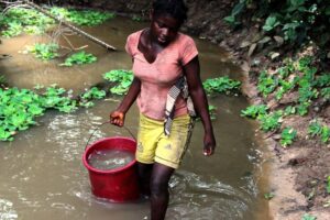 Despite improvements in urban water access, disparities between urban and rural communities remain stark. In many underserved areas, households rely on water sources shared with animals or contaminated by activities such as illegal mining, raising the risk of waterborne diseases.