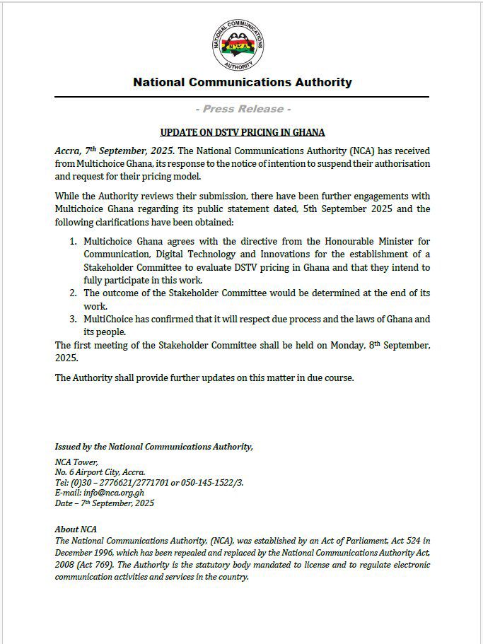 The standoff between government and MultiChoice Ghana over DStv subscription fees is moving into a new phase, as the National Communications Authority (NCA) has announced that the pay-TV operator will participate in a stakeholder committee to review its pricing model.