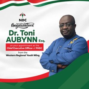 The Western Regional Youth Wing has commended President John Dramani Mahama for appointing Dr. Tony Aubynn as the Chief Executive Officer of the Petroleum Hub Development Corporation.
